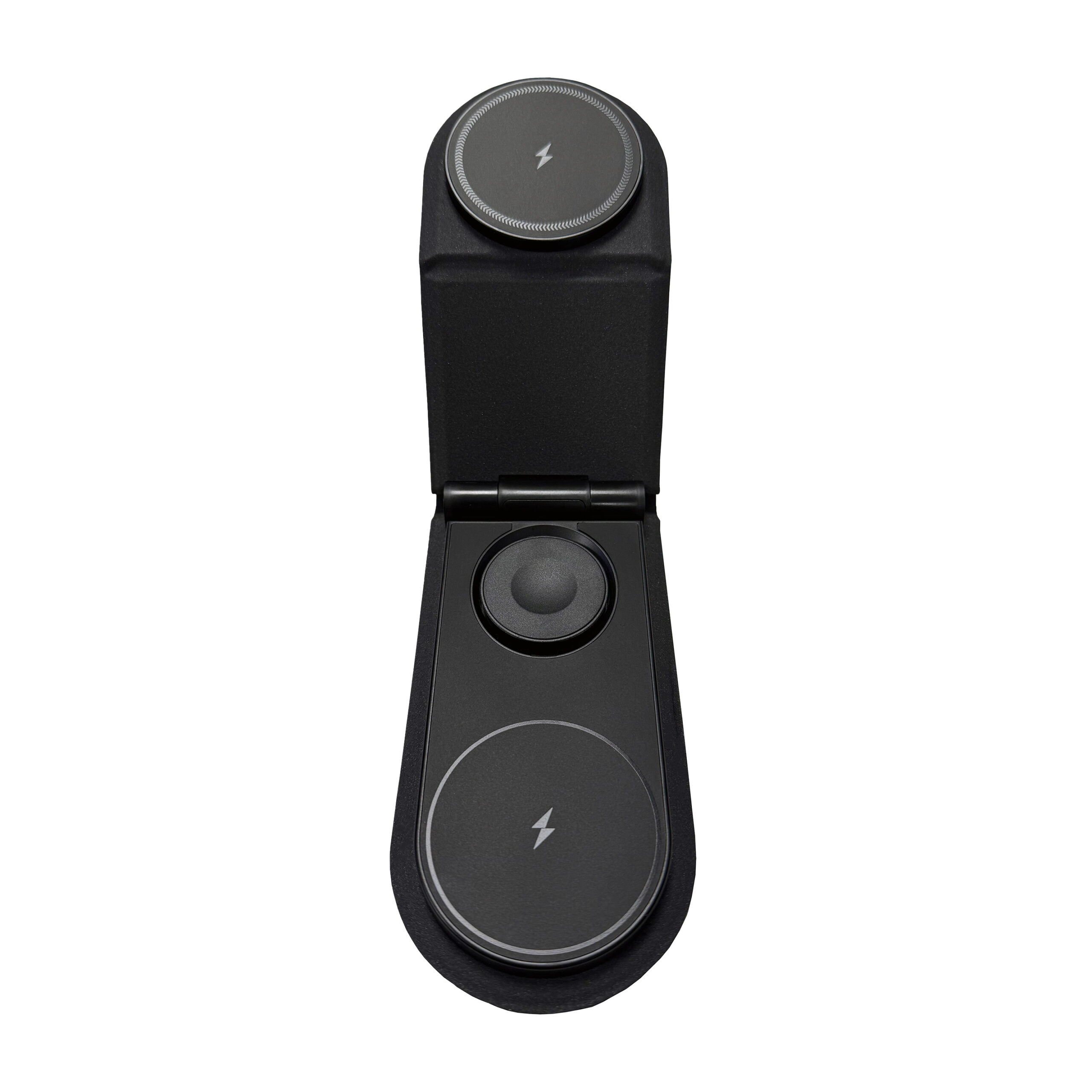 Stationen är hopfällbar och enkel att ta med, vilket gör den perfekt för resor eller att ha med sig till kontoret. Dess justerbara höjd och visningsvinkel gör det möjligt att placera mobilen både i porträtt- och landskapsläge, vilket är idealiskt för videosamtal, streaming eller multitasking medan du laddar.
