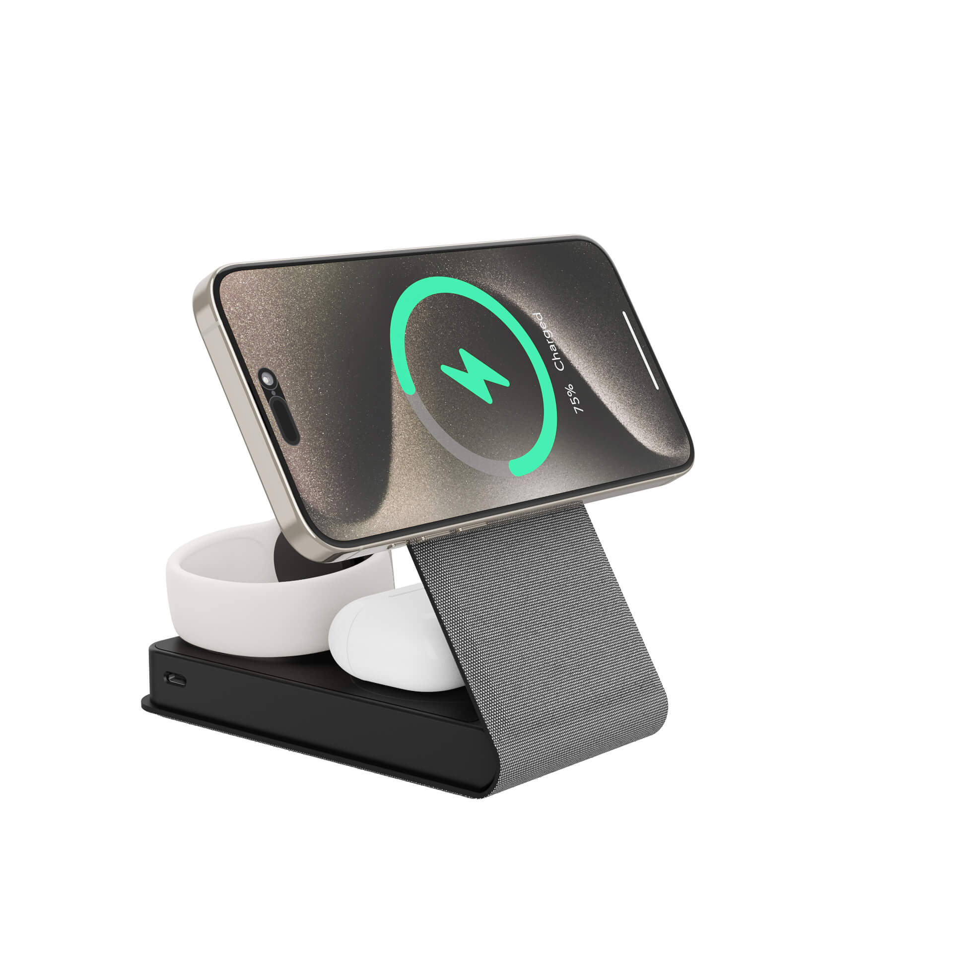 GoWatt M8 Snap Power All-in-One är en MagSafe-kompatibel 3-i-1 powerbank med 10 000mAh kapacitet, trådlös snabbladdning och ett smart, hopfällbart stativ. Perfekt för att ladda din iPhone, Apple Watch och AirPods samtidigt – både hemma och på språng.